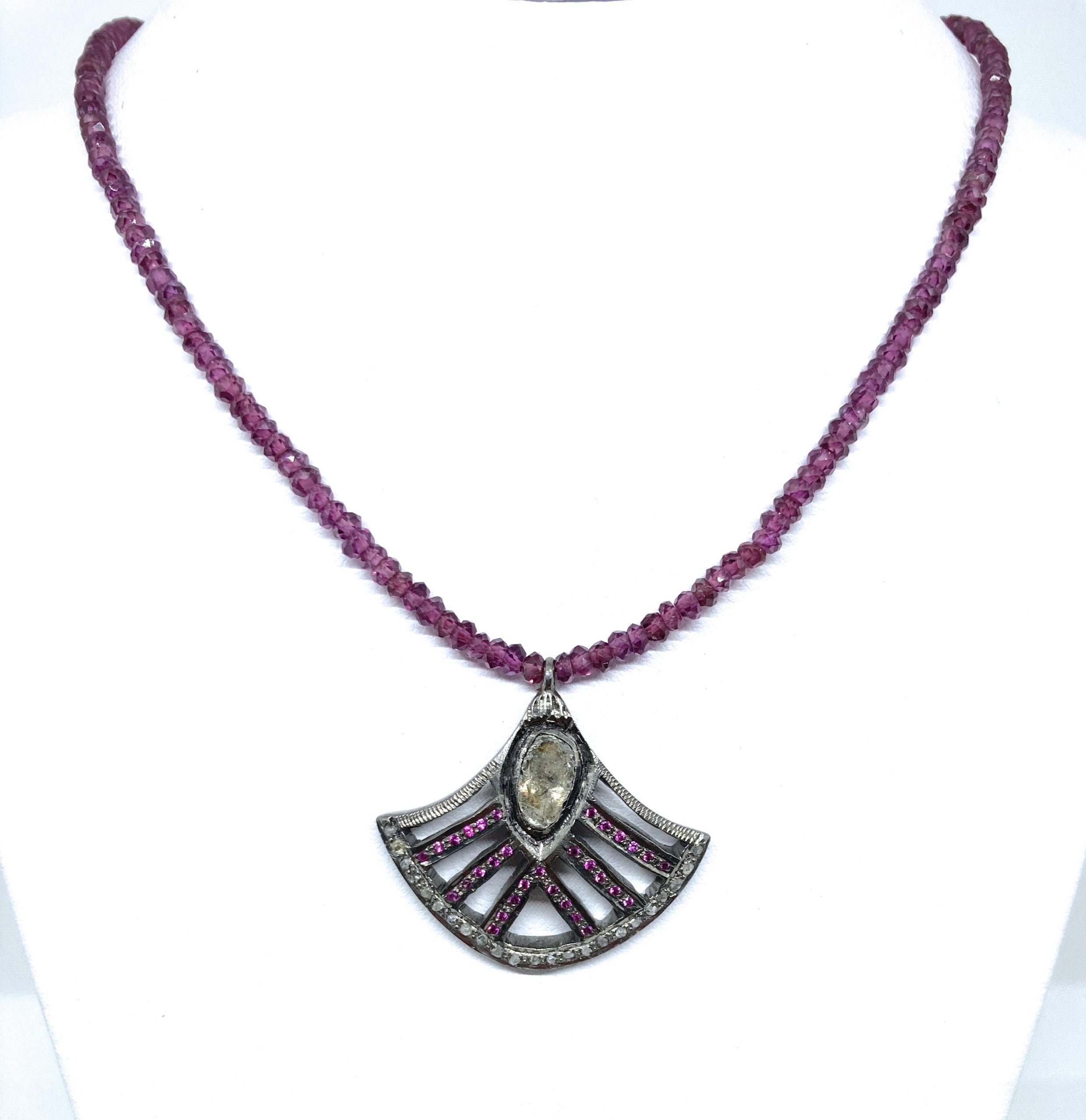 Cuello de cuentas facetadas de granates.