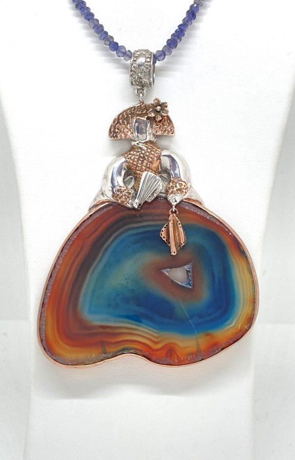 Plata , con acabado de rodio y , detalles en baño de oro rosa.