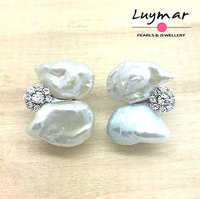 Pendientes con doble perla cultivada barroca de agua dulce.