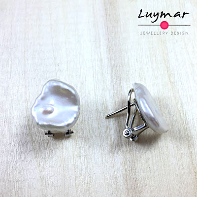 Pendientes de perla cultivada barroca de agua dulce.