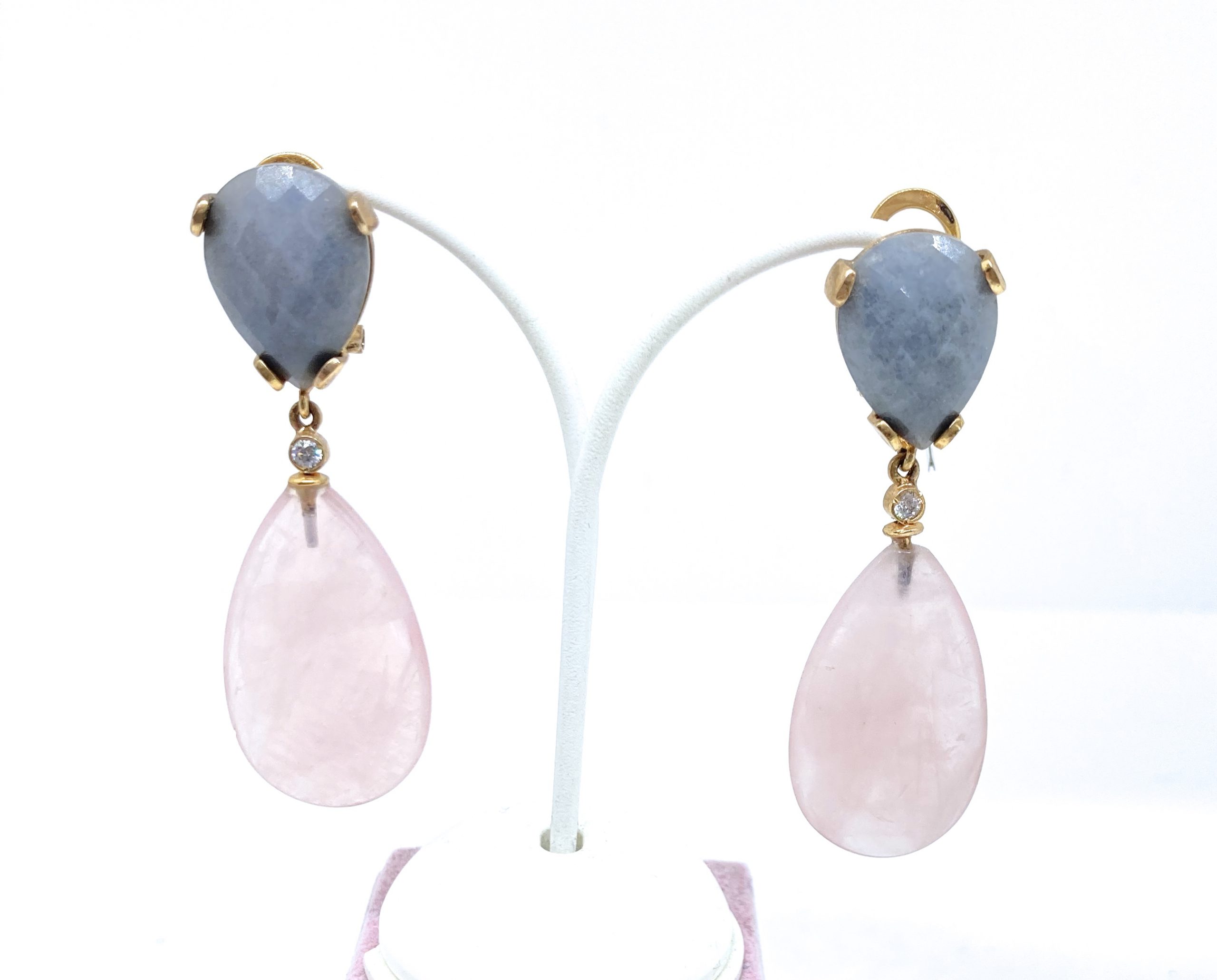 Pendientes de Ágata azul y Cuarzo rosa.