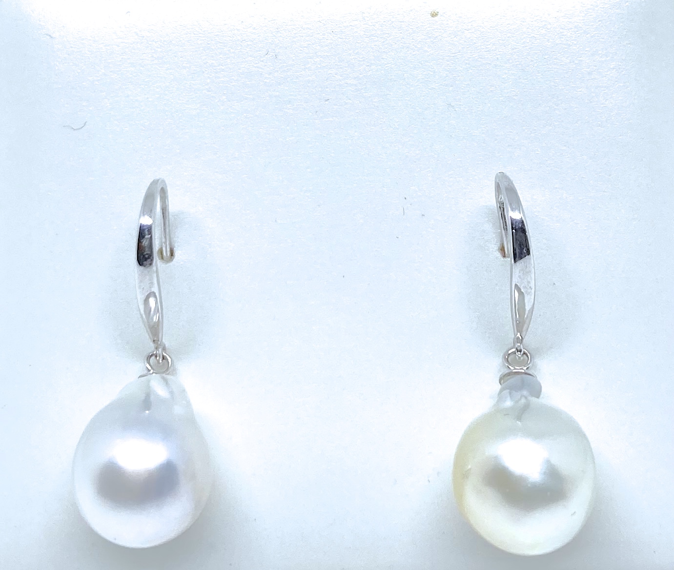 Pendientes de Perla Australiana Barroca,fabricados en España , por Joyas Luymar, Castellón de la plana.