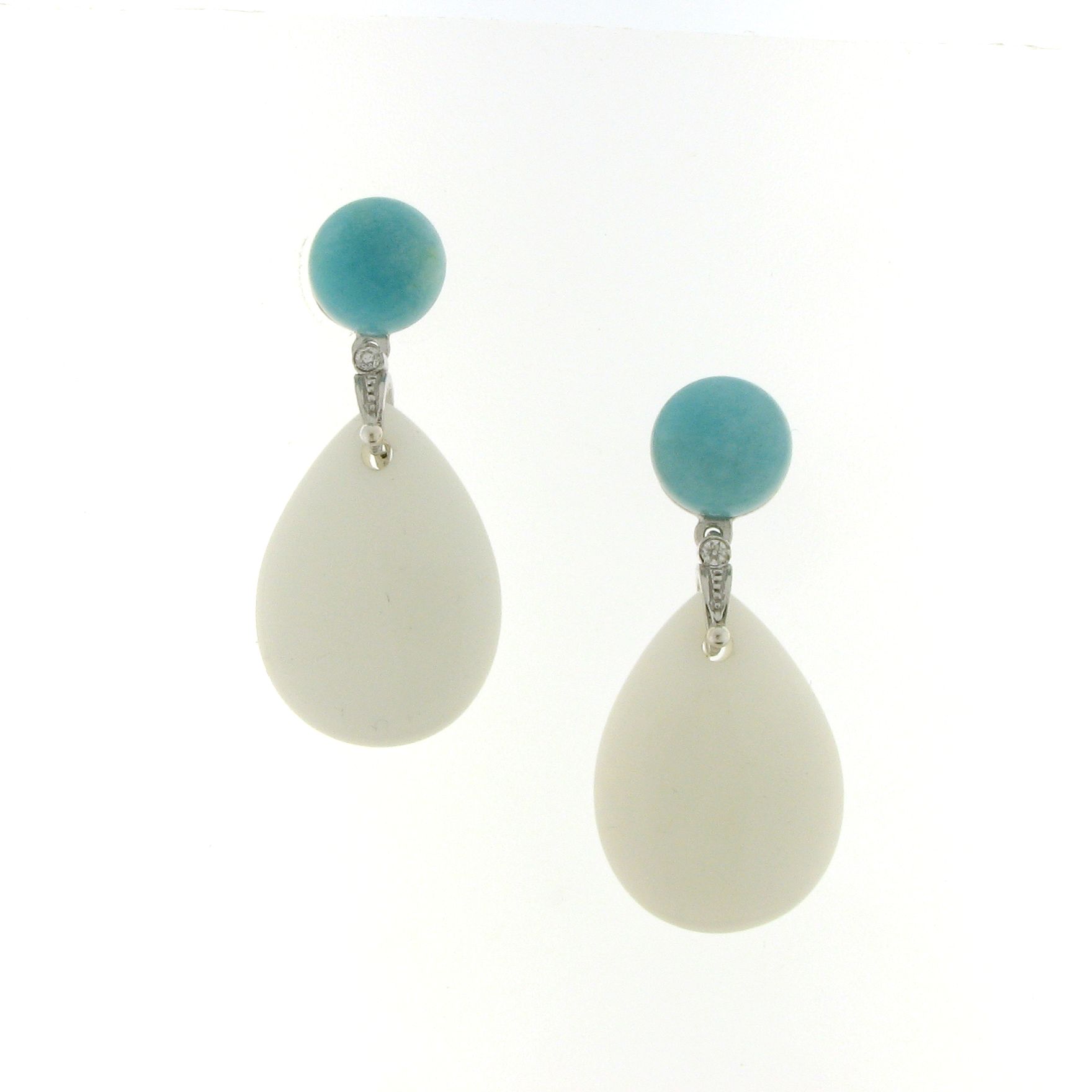 Pendientes de plata rodiada , con Amazonita y Ágata blanca