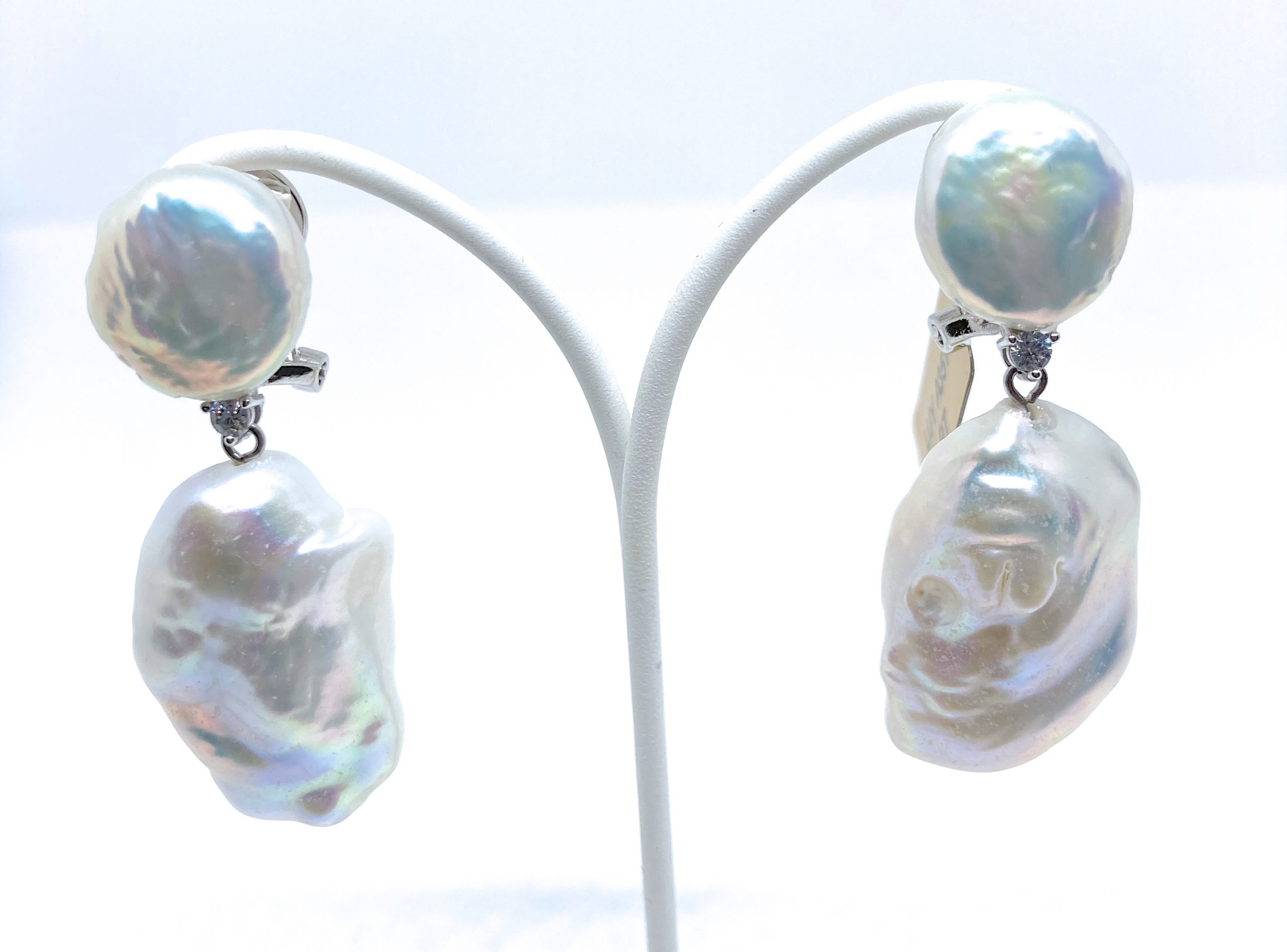 Home Plata Pendientes largos con Perlas Barrocas extra grandes.