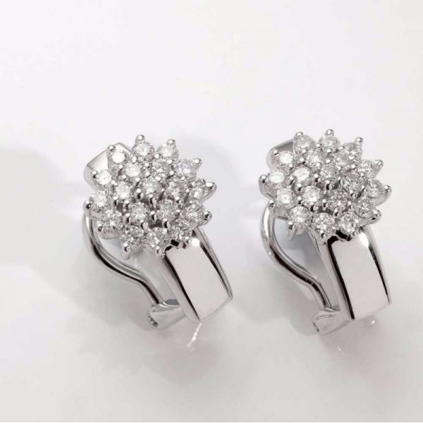 Home Made in spain Pendientes roseta de brillantes,cierre omega, en oro blanco, en mate y brillo.0,87 cts .