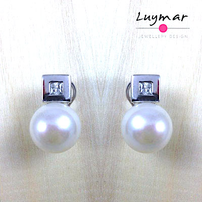 Pendientes de perla cultivada, de agua dulce, y circonita premium.