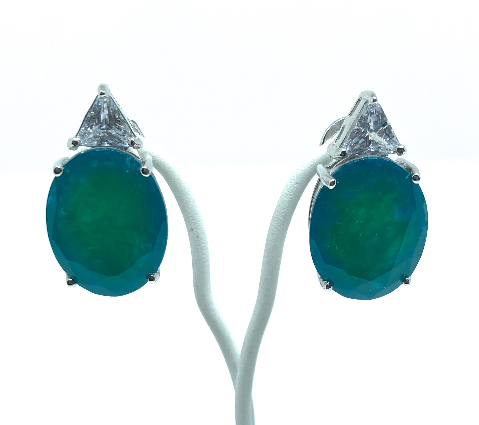 Pendientes tu y yo, con Terbium verde,en doblete de Cuarzo natural y circonita triángulo.