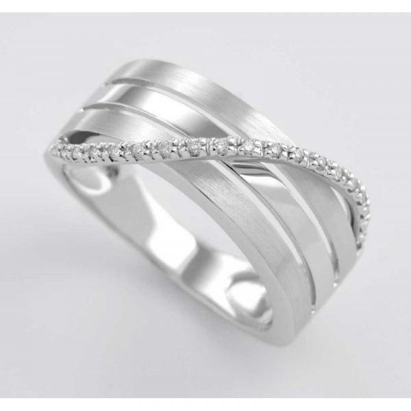 Home Oro Sortija aro triple , en oro blanco y Diamantes.