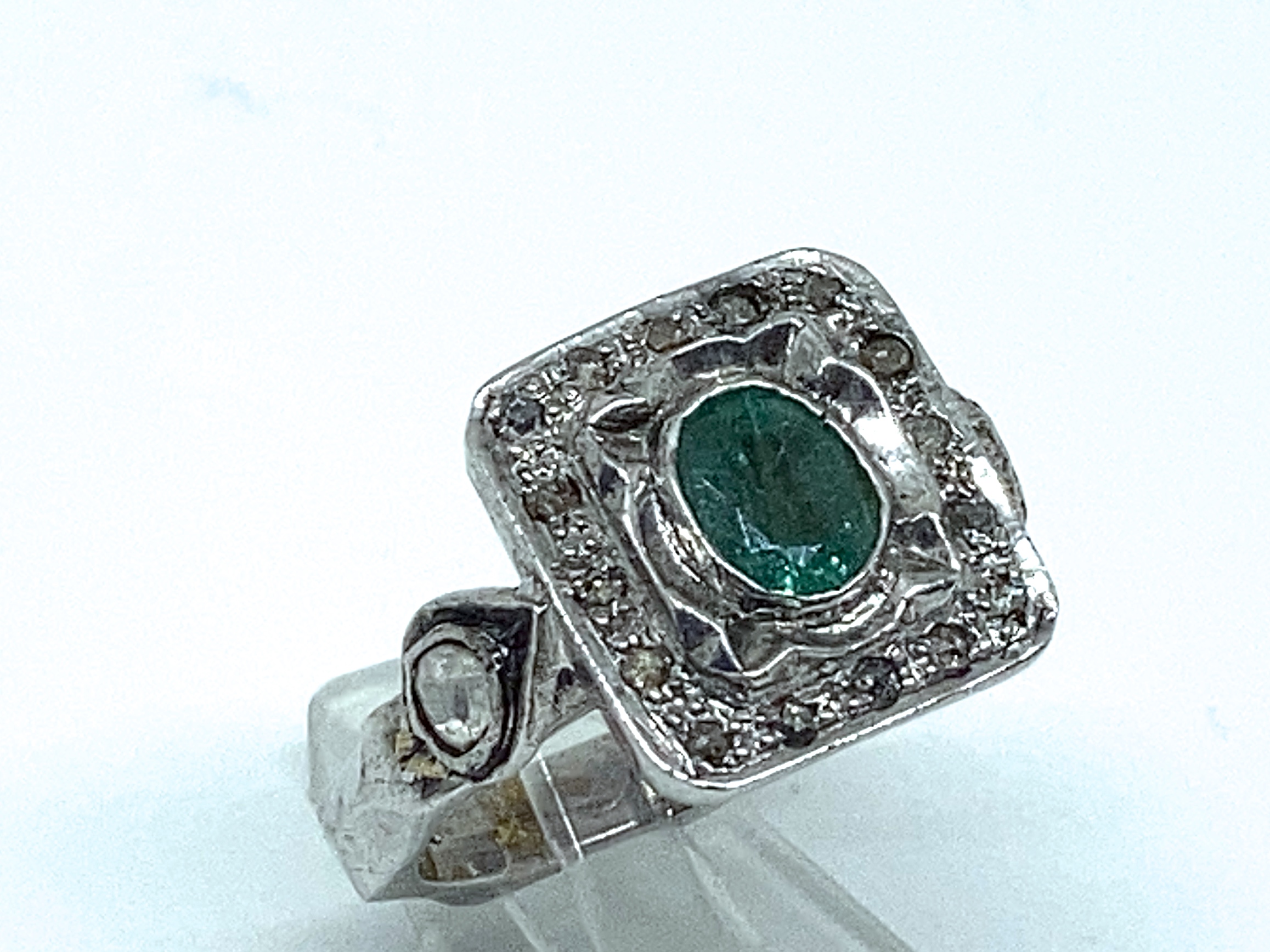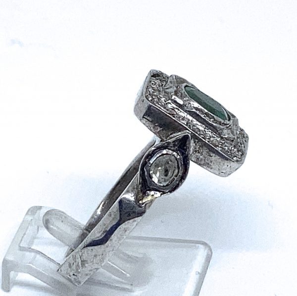 Home Plata Sortija de plata rodiada ,con Esmeralda y diamantes talla rosa.