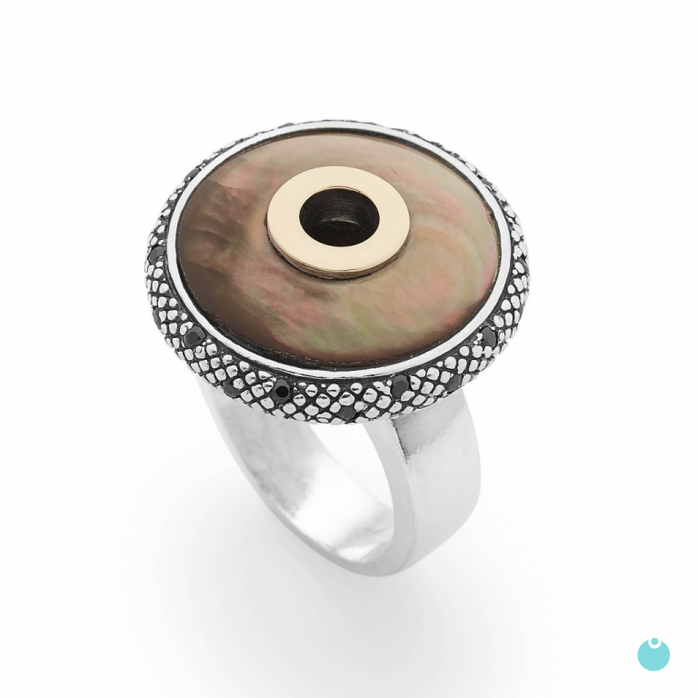Anillo tricolor en plata y ,Lapislázuli,Ágata y Ópalo.