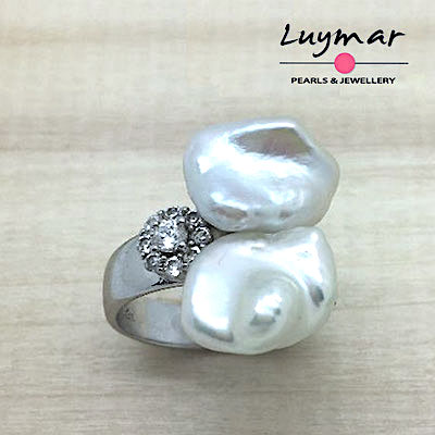 Sortija plata de Ley y perlas barrocas de agua dulce.